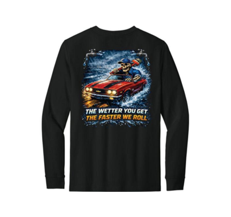 When the job gets messy, Nunzio rolls in. This design captures the unstoppable spirit of the plumber who answers the call no matter the conditions. Featuring a bold skeleton plumber tearing through the rain in a classic muscle car with wrench in hand, the Nunzio shirt represents speed, grit, and the blue-collar work ethic that gets the job done when others won’t.