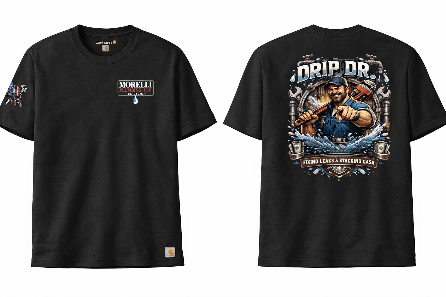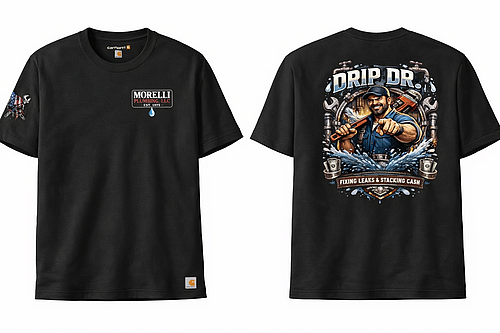 Meet Vincenzo, the plumber who shows up when the job gets tough. The Vincenzo “Drip Dr.” shirt is built to represent the pride, grit, and hustle of the blue-collar trades. Featuring bold artwork of a hard-working plumber ready to handle any leak, surrounded by pipes, flowing water, and the rewards of honest work, this design celebrates the mindset of those who keep the water flowing and the job getting done.