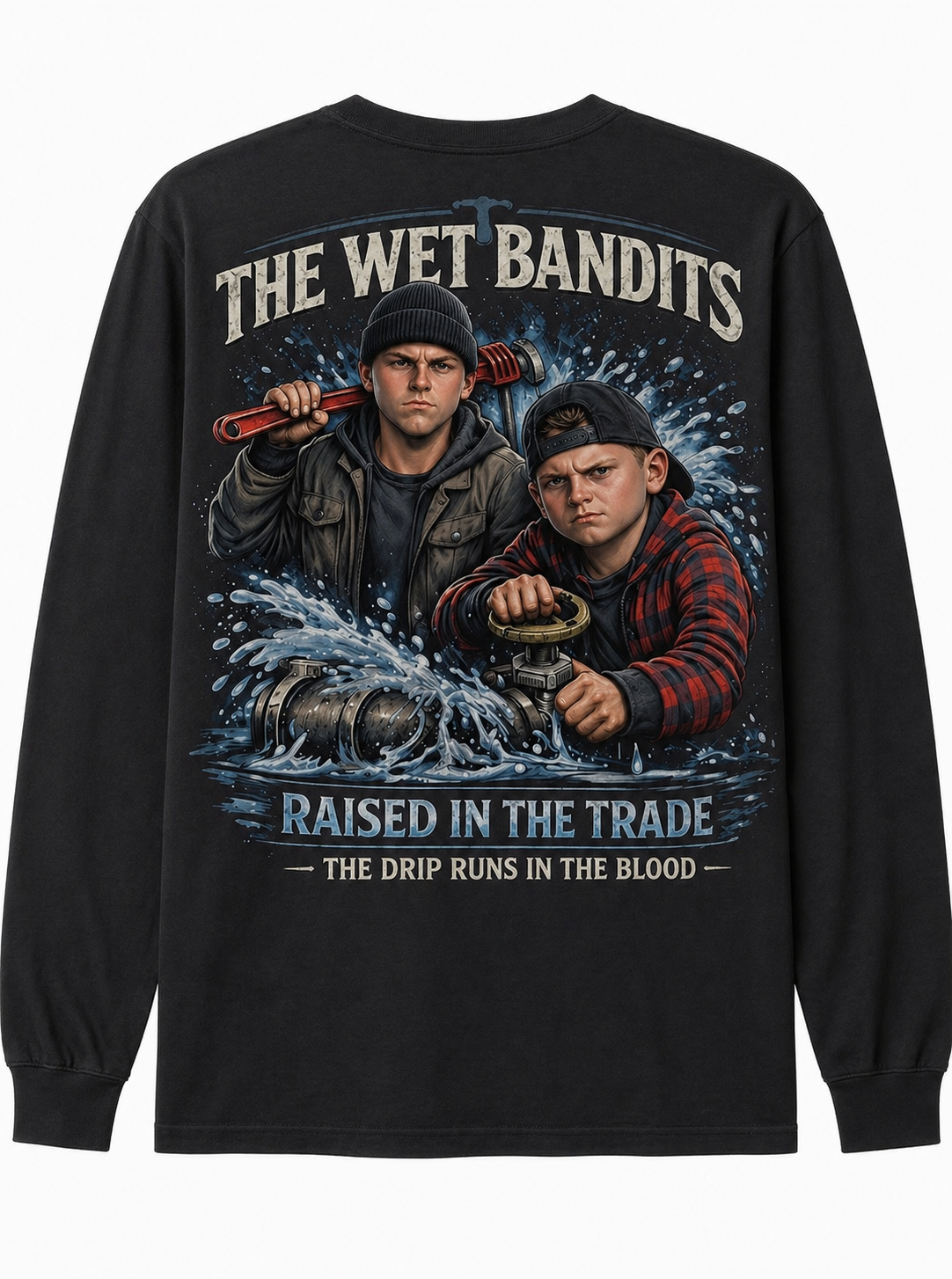 Inspired by two brothers brought up under the wing of The Drip Dr. — learning the trade from their dad, one jobsite at a time — The Wet Bandits is a tribute to family legacy, blue-collar grit, and the next generation carrying it forward.